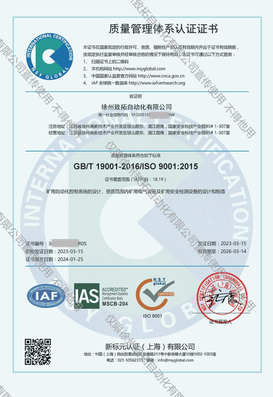 礦用隔爆兼本安型PLC控制電路設(shè)計(jì)登記證書(shū)